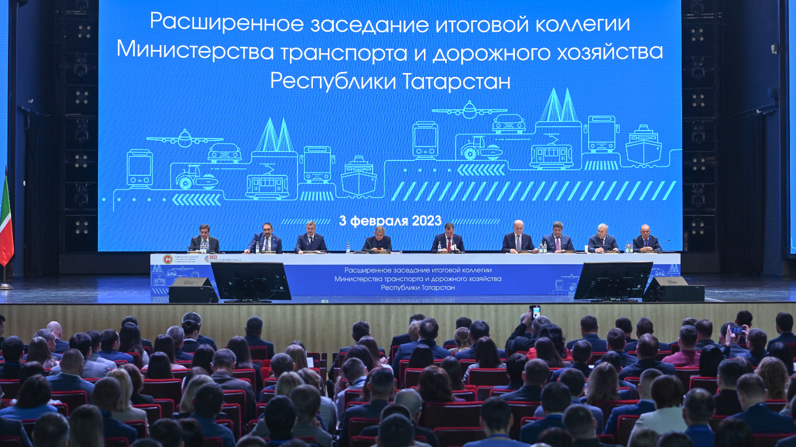 В расширенном заседании коллегии приняли участие заместитель председательства Правительства России Марат Хуснуллин и Президент Республики Татарстан Рустам Минниханов.