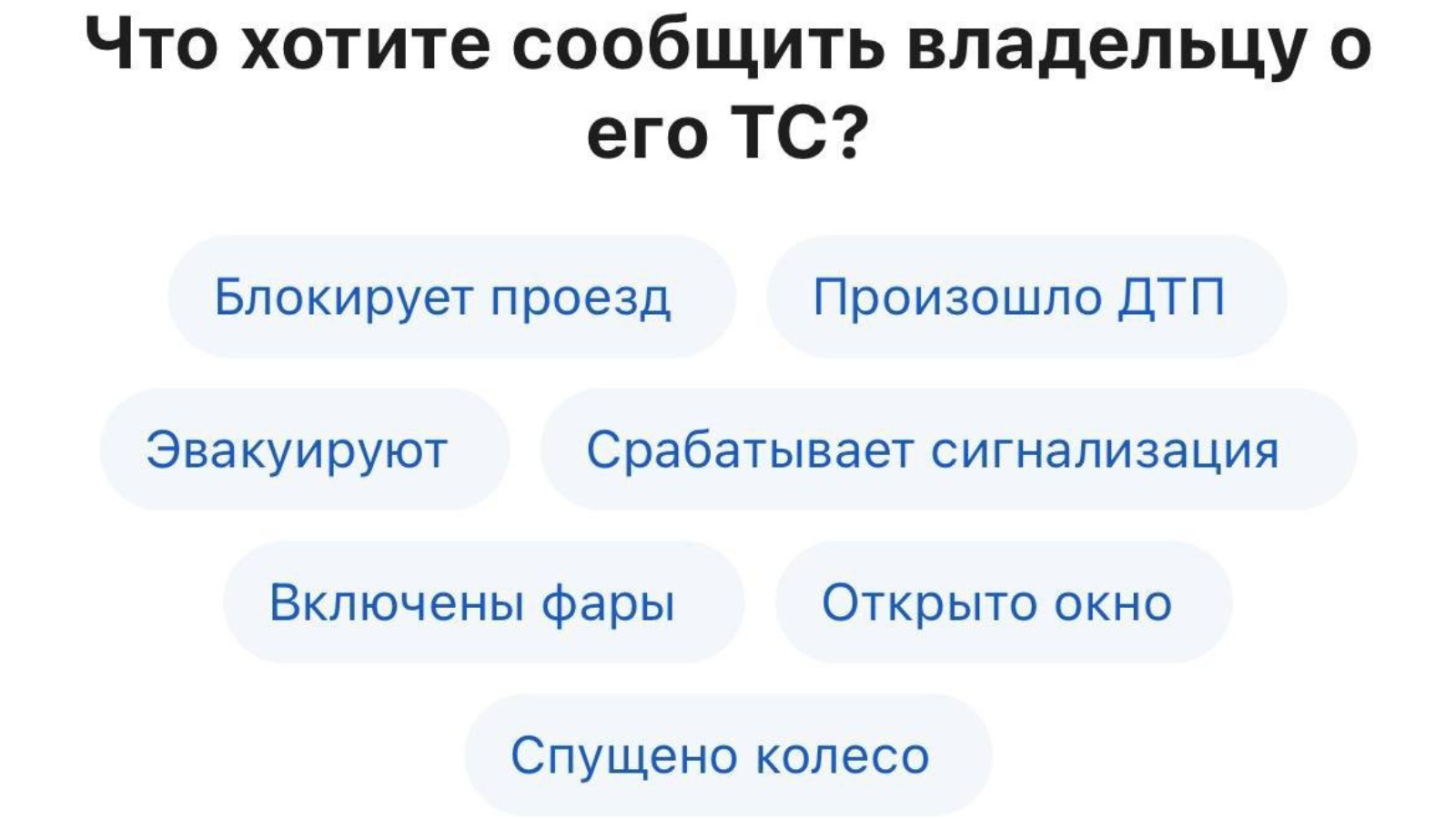 В приложении «Госуслуги Авто» выберите: Услуги → Сообщение о проблеме владельцу транспортного средства