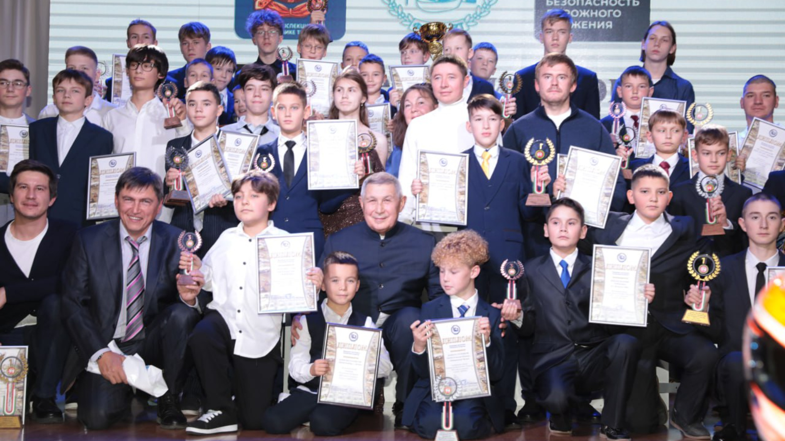 На сцене чествовали 57 пилотов – победителей и призеров первенства и обладателей Кубков Республики Татарстан по картингу в различных классах.